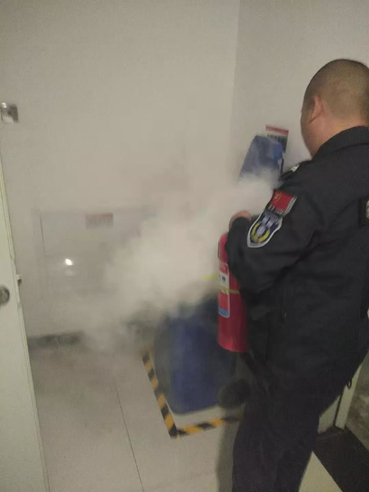 保安公司一大隊某駐勤點(diǎn)保安員在樓層巡查時,發(fā)現(xiàn)某樓層垃圾桶冒煙有火情,周邊存放易燃易爆危險品。